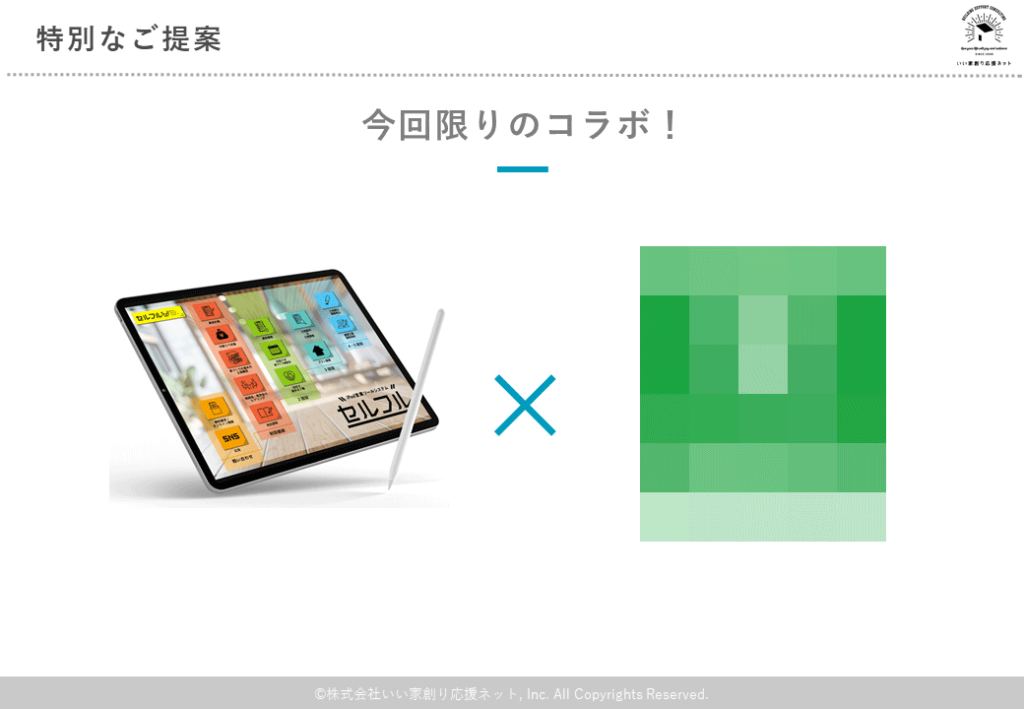 そして今回は当日参加された方限定で素晴らしいご提案をさせていただきました。弊社が提供しているiPad営業支援システム『セルフル』との相性が非常に良く、さらにすでに数多くのクライアントを獲得している「とあるサービス」がコラボレーションすることになったのですが……