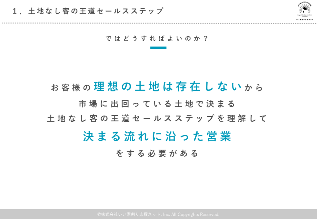 - 買い方説明(土地営業)の3つのポイント