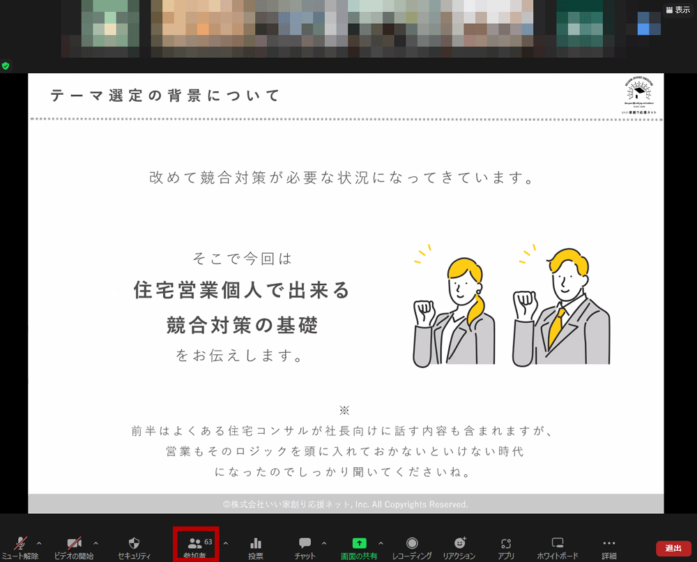今回も多くの方にご参加いただきました。当日は営業パーソン個人が一人でも、すぐに出来て効果が大きい競合対策の方法を公開していきました。