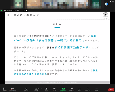 テーマは「営業ができる競合対策~基礎編~」でした。