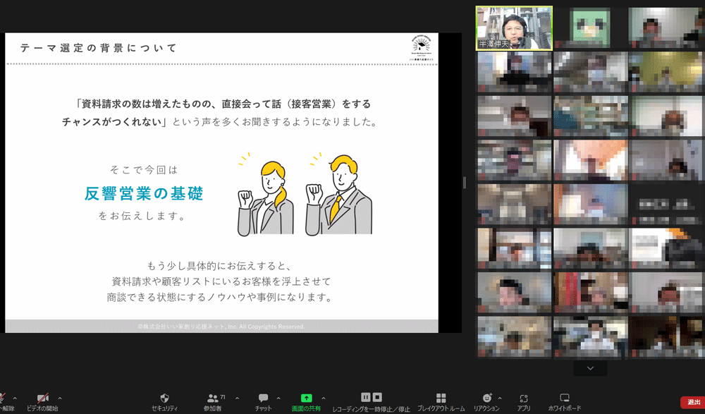 テーマは「反響営業の基礎~リスト顧客を浮上させて、商談件数を増やす方法~」でした。
