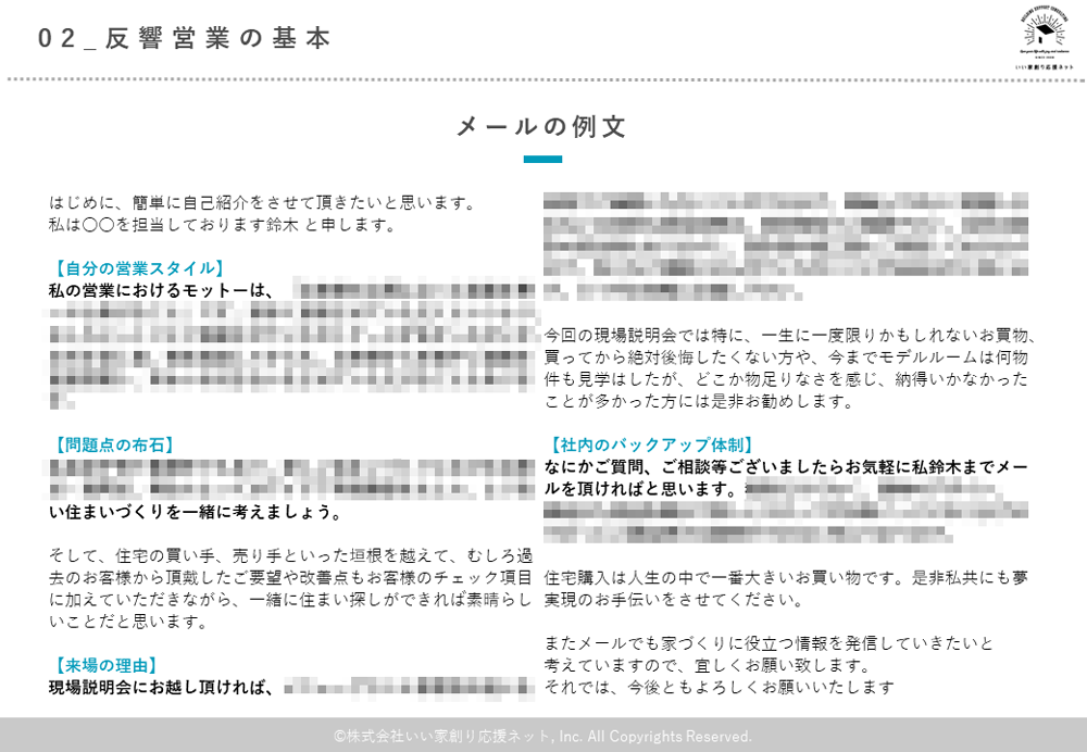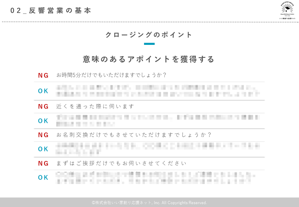 • 反響営業時の具体的な話し方等が分かり勉強になりました