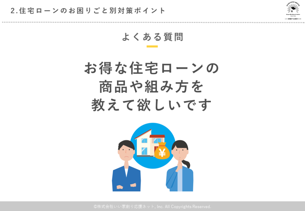 ということで当日は最新の住宅ローンのトレンドの話から、上記のような質問や一見すると住宅ローンを組むのが難しいように感じる属性の方に対する具体的な解決策などを複数事例お伝えしていく予定です。