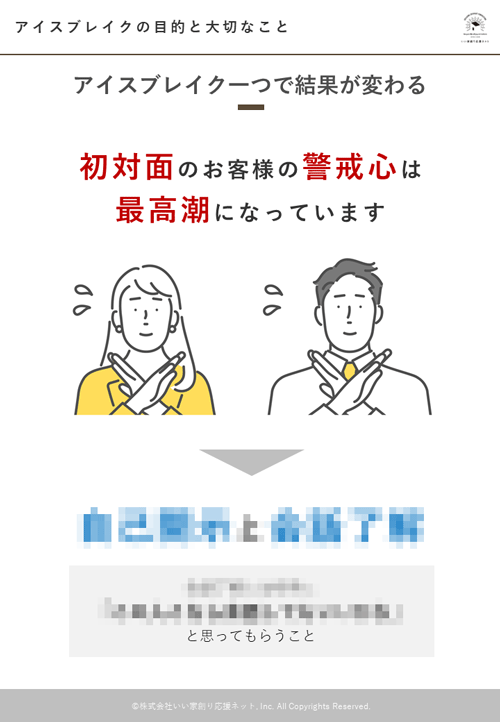 その答えの一つがお客様の警戒心を緩める「アイスブレイク(雑談)」トークです。