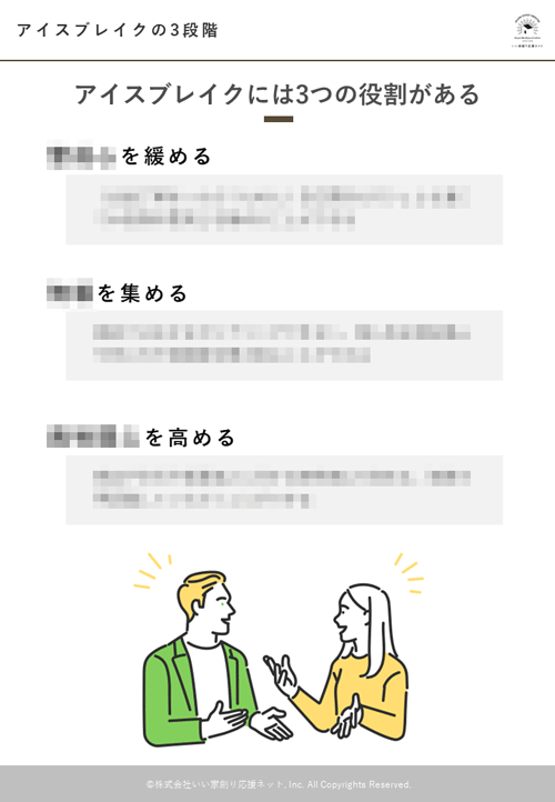 • 具体的で効果的な複数のアイスブレイクトークが手に入る