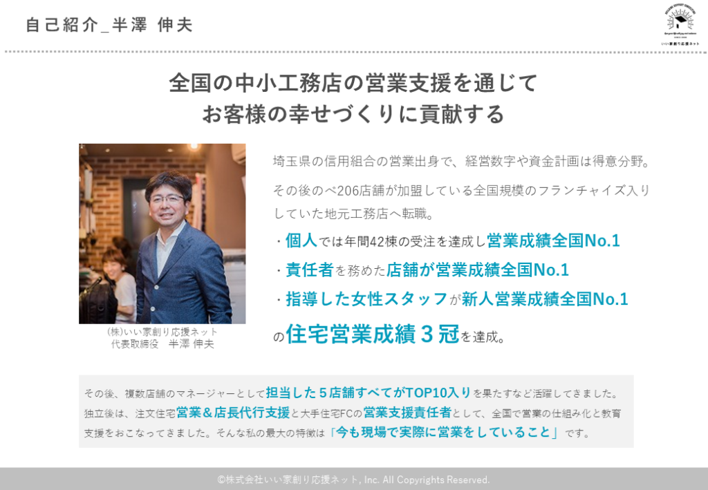 今回は今も現場で営業し続けているからこそ可能な、現在進行形で成果が出ているトップセールスの「考え方」「営業ノウハウ」「成功事例」などについてお伝えします。