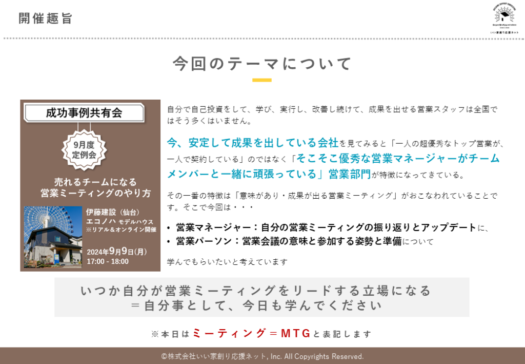 開催テーマ売れる営業チームになる営業ミーティングのやり方