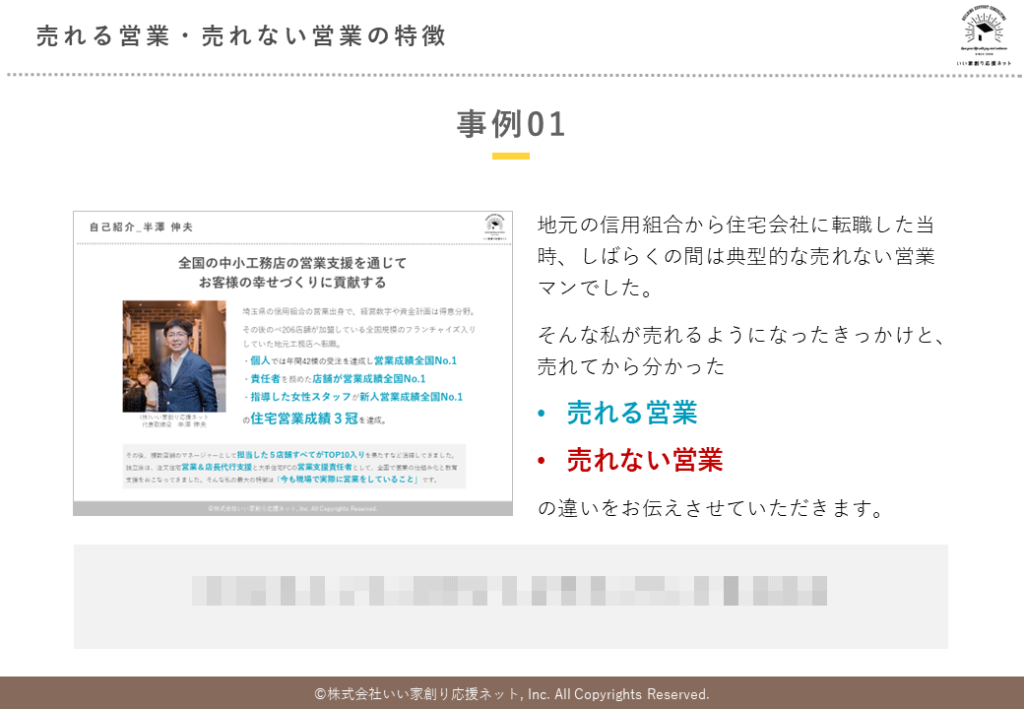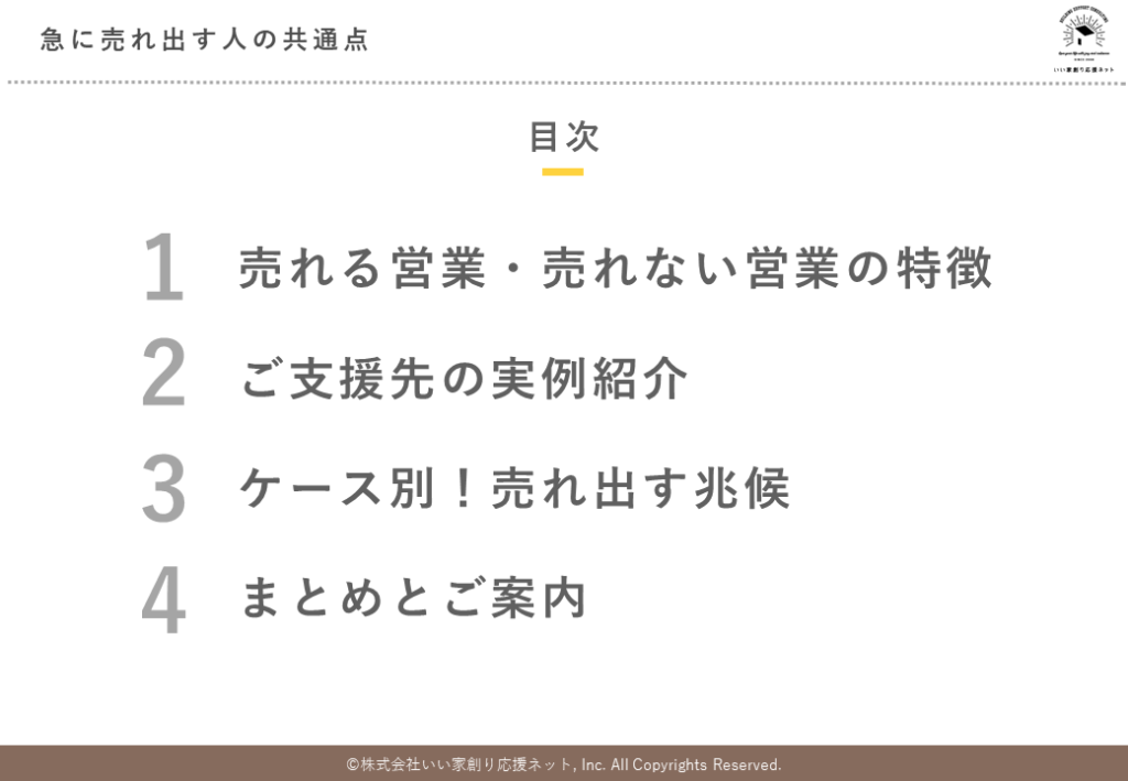 今回は営業代行やコンサルティングなどで今も全国の工務店で営業指導している中で見てきた「今はまだ売れていないけど」何かのきっかけがあれば「売れ出すようになる人の共通点」を体系的にお伝えします。