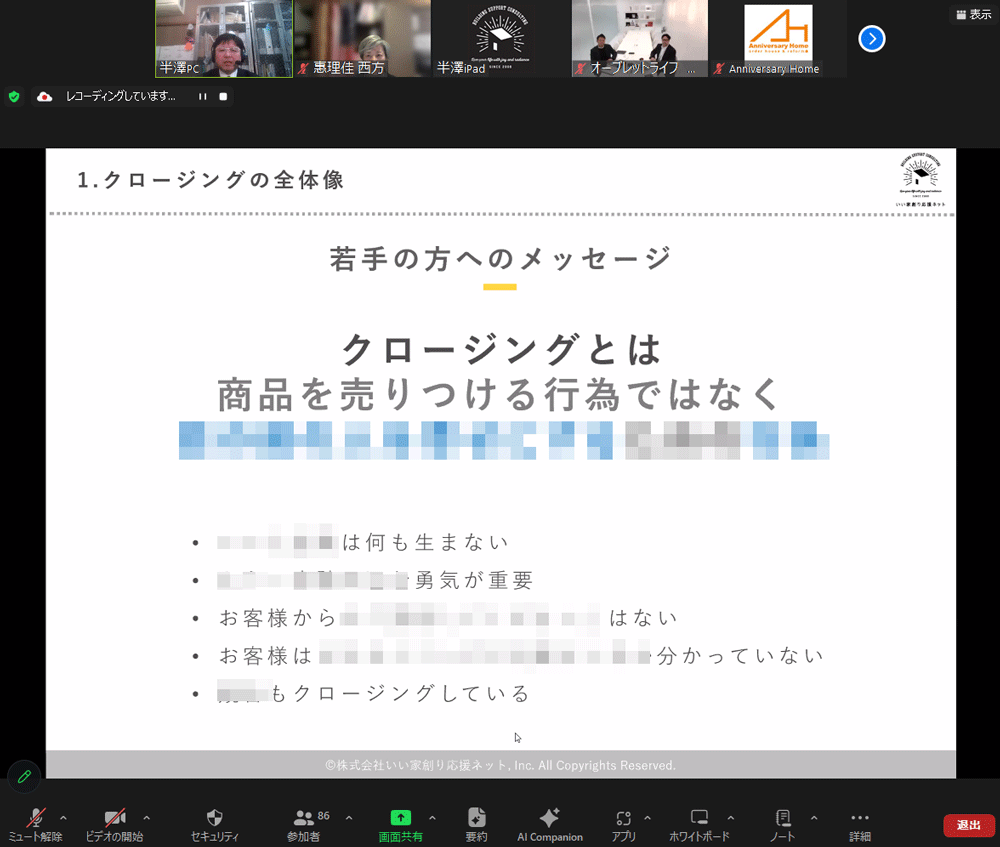 久しぶりに90名を超える方にご参加いただき、クロージングに対する関心の高さを実感しました。