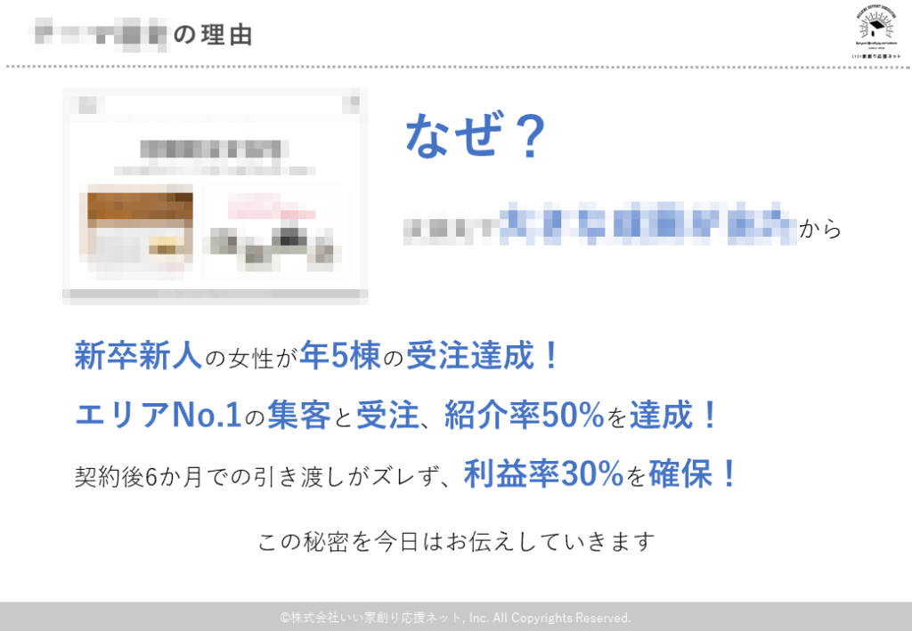 など、集客や契約はもちろん、その後の工事や利益確保の面でも大きなメリットがあります。そこで2021年最初の成功事例共有会では、
