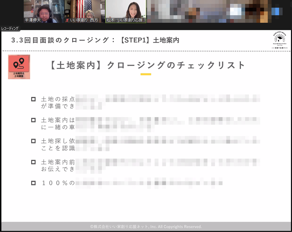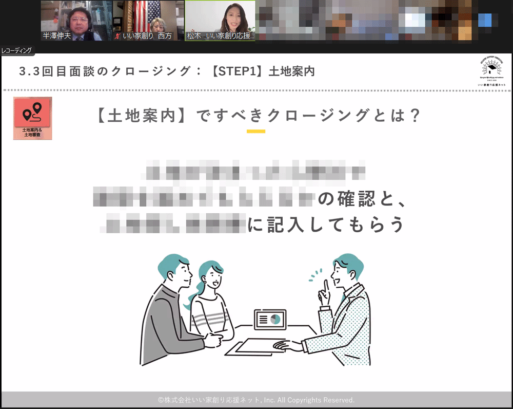 - 土地決定のクロージングなど苦手な部分の進め方をご教授いただけたので、次回の土地提案時に試したいと思います