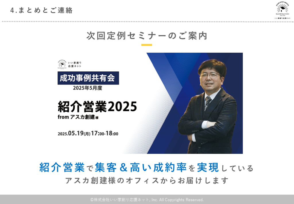 次回は今、北信越エリアで急成長しているアスカ創建様の視察ツアーの途中で、現地からオンライン配信いたします。