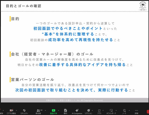 - 営業スタッフには住宅営業の最大のポイントは初回接客と伝えており、成功事例共有会でも伝えていただくことでより重要であることがスタッフにも伝わったと思います。