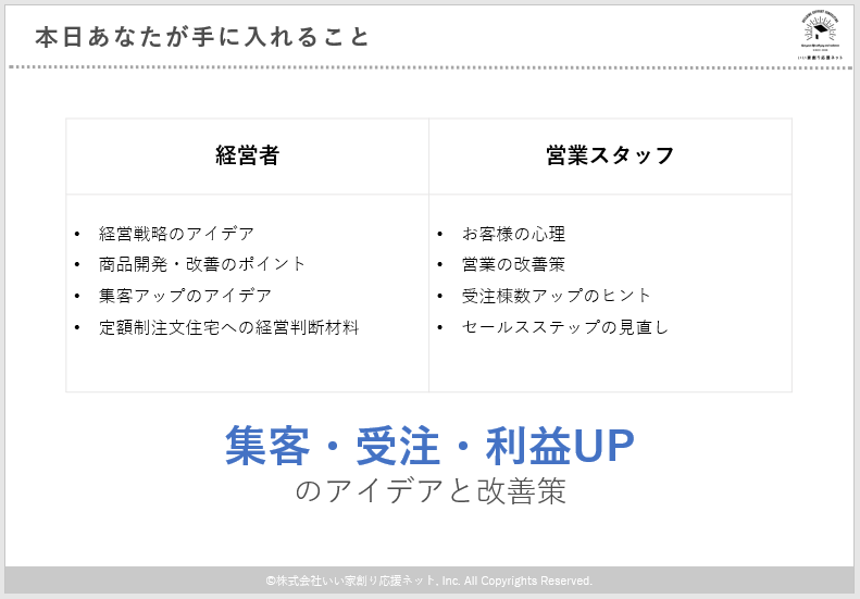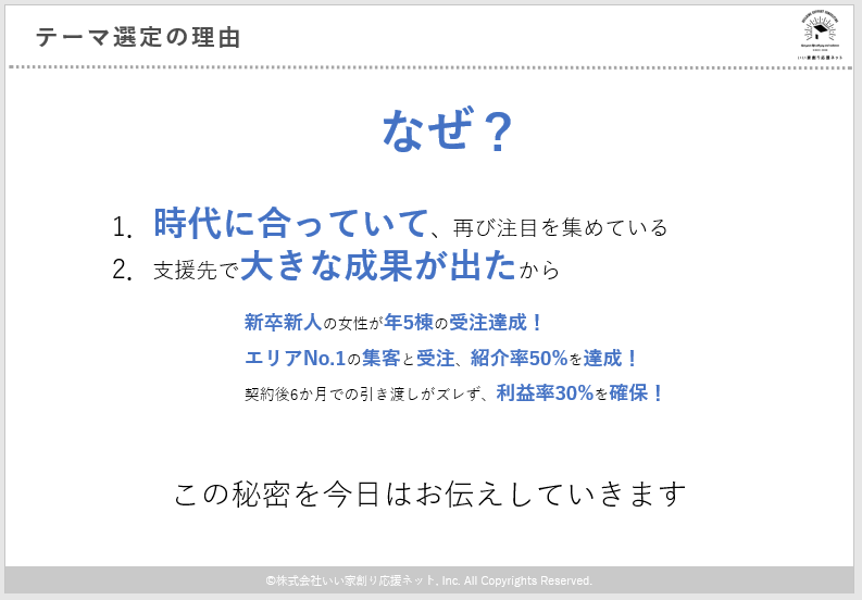 お届けしたテーマは今大注目で半澤の支援先でも伸び続けている住宅ビジネスモデルをご紹介しました。