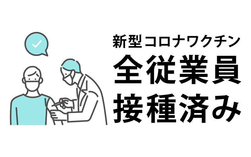 全従業員が新型コロナワクチンを接種しました 2021.08.22 お知らせ 当社は、ワクチン接種の加速化による新型コロナウイルス感染症の収束への貢献と、お客様を含めた関係者の皆さまへの不安を軽減するために、全従業員のワクチン接種を実施しました。