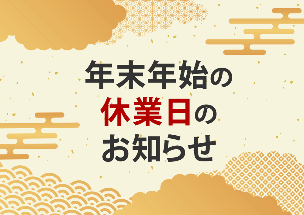 年末年始の休業日のお知らせ 2022.12.21 お知らせ 弊社では誠に勝手ながら年末年始休業のため、下記の通り休業させていただきます。 ご迷惑をおかけしますが、何卒ご了承下さいますよう、宜しくお願い致します。 2022年12月29日(木)~2023年1月6日(金) 尚、2022…