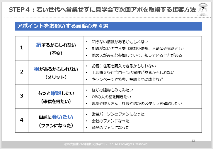 ではそんなイマドキ顧客からどうすれば次回のアポイントをいただけるのでしょうか?ここでは非常に有効な4つの顧客心理を公開します。それが……