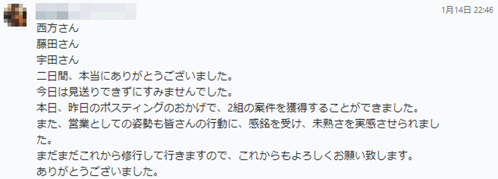 先ほどご紹介したメッセージをくれた事業責任者の方は「やっぱりポスティングはやれば結果が出るんですね!」とおっしゃっていました。