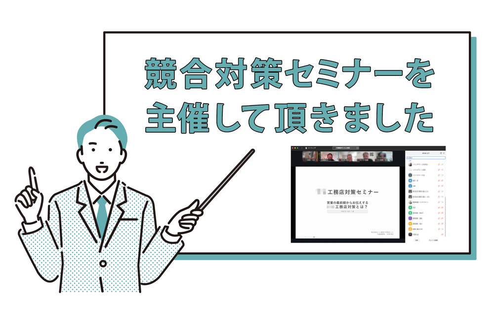 競合対策セミナーに登壇しました 2025.02.19 開催報告 弊社のクライアント様で成功事例共有会の会員にもなっていただいているアスカ創建様からのご依頼で「○○工務店対策セミナー」を開催しました。 今回はアスカ創建様から「仲間の工務店を集めるので、ぜひ私たちに競合対策セミナーを開催…
