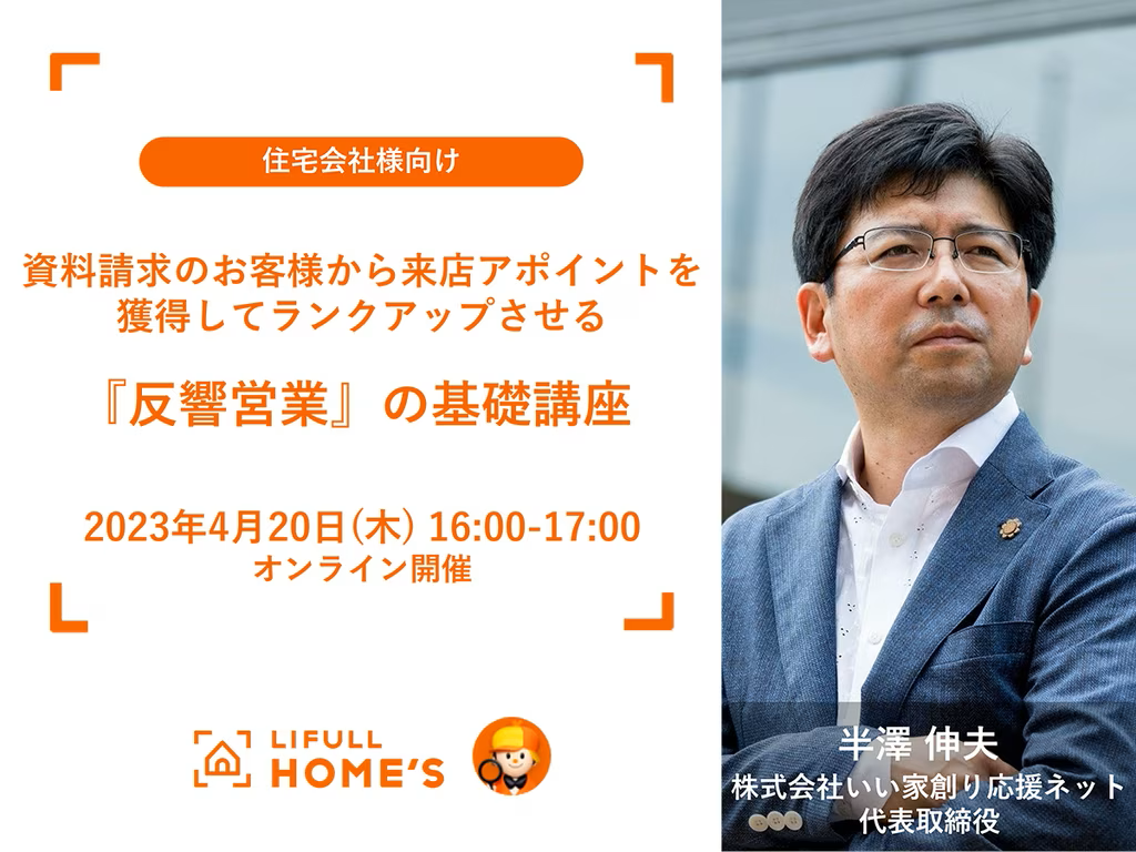 LIFULL様とのコラボセミナーに登壇します 2023.04.04 開催予告 日本最大級の不動産・住宅情報サイトを運営している株式会社LIFULLと弊社のコラボレーションセミナーが決まりました。 今回の内容は『反響営業』です。 実は「反響営業」に関しては2022年9月の成功事例共有会の定例会で、一…